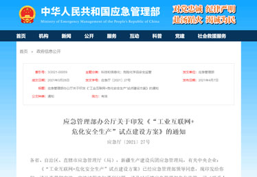 淺談應急部[2021]27號文-工業互聯網+危化安全生產