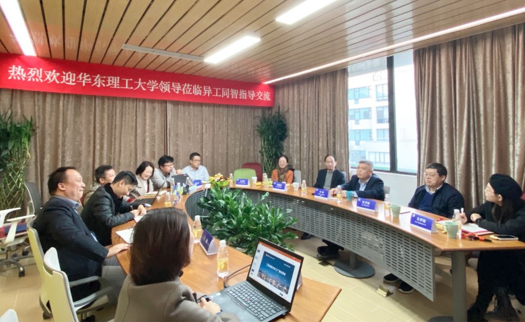 12月22日下午,華東理工大學黨委常委、副校長李濤、校友與發(fā)展聯(lián)絡處處長李建偉、化工學院黨委書記朱學棟、校友與發(fā)展聯(lián)絡處副處長王芝眉、校友與發(fā)展聯(lián)絡處干事朱夢婕一行蒞臨位于上海張江高科園區(qū)的異工同智產(chǎn)研中心走訪交流。