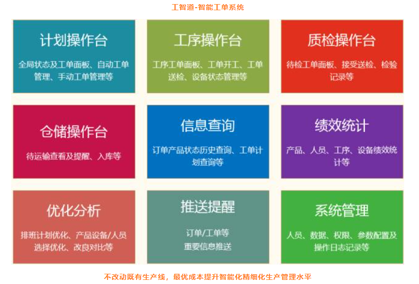 工之道-智能工單系統(tǒng)是針對(duì)批次式生產(chǎn)企業(yè)中廣泛存在的“產(chǎn)品品類(lèi)多、工序變化多、設(shè)備型號(hào)雜、智能改造難”等問(wèn)題而開(kāi)發(fā)的,是一套以移動(dòng)互聯(lián)網(wǎng)、云計(jì)算、大數(shù)據(jù)等技術(shù)為工具,以幫助企業(yè)顯著提升信息化管理水平、人員效率、設(shè)備運(yùn)轉(zhuǎn)率和生產(chǎn)穩(wěn)定性為目標(biāo),聚焦工單生產(chǎn)過(guò)程管理的信息化系統(tǒng)。具有信息實(shí)時(shí)互聯(lián)、過(guò)程可控可追溯、績(jī)效可視化、生產(chǎn)智能化標(biāo)準(zhǔn)化、生產(chǎn)預(yù)測(cè)科學(xué)化等特點(diǎn)和優(yōu)勢(shì)。