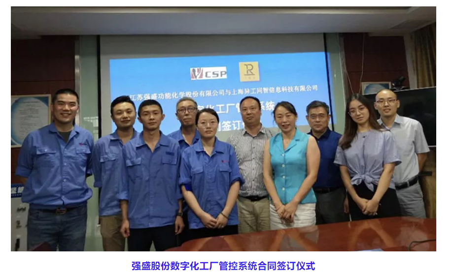金秋季節(jié),上海異工同智信息科技有限公司與江蘇強盛功能化學股份有限公司(股票代碼:831184)、江蘇南大光電材料股份有限公司(股票代碼:300346)分別簽訂“工智道數(shù)字化工廠管控系統(tǒng)”許可合同,與精細化工行業(yè)的兩家代表性企業(yè)奠定堅實的戰(zhàn)略合作基礎。