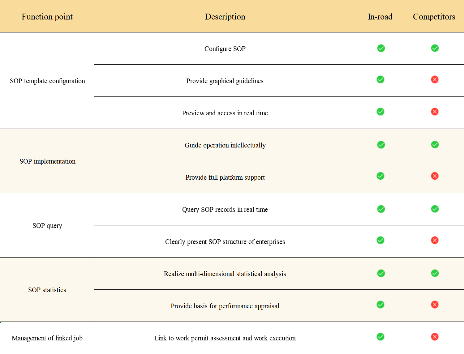 In-Road E-SOP management module can realize paperless, standardized, electronic management of standard operating procedures, replace traditional paper records, automatically make statistical analysis, save time, improve efficiency, standardize staff operation standards, improve the safety of operation behavior and product quality, and thus enhance to improve corporate management, competitiveness and corporate image